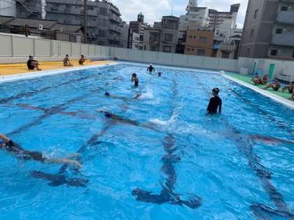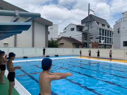 1学期に続いて、オリンピックメダリストの中西悠子さんに来校していただき、水泳の特別授業をしていただきました。今回は平泳ぎを重点的に指導してもらいました。初めて泳ぎに挑戦する児童がほとんどでしたが、中西さんの教えをすぐに吸収して、初めてとは思えないほど上手に泳ぐことができました。その上達の速さに、中西さんも驚いていました。