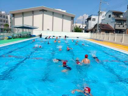 月曜日、4年生最後のプールがありました。泳力測定の後、恒例の「サイレント宝さがし」で締めくくりました。プールサイドの「1列目」対「2列目」での勝負。結果は、なんと70個と68個で、2個差のいい勝負となりました。最後まで、しっかりと約束をを守って楽しめました。