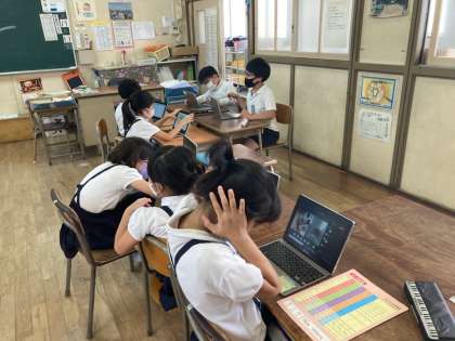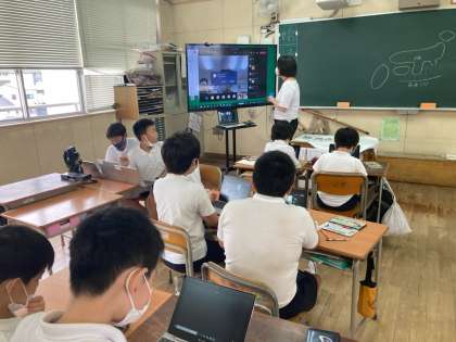3年生では、1人1台のタブレットを使って、Teamsを使う練習をしました。みんな、担任の先生とつながりあうことができました。「挙手」のボタンやミュートの使い方を学びました。