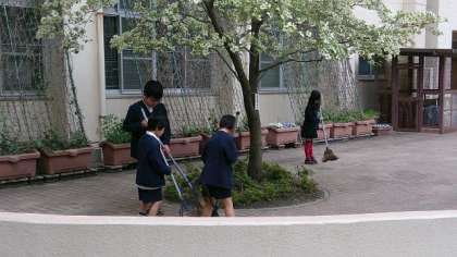 昨日の話し合いで決めた役割分担にしたがって、今日からたてわり清掃がはじまりました。