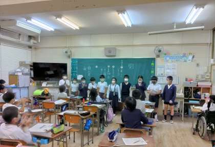 今日まで練習を重ねてきた成果を発揮する日がやってきました。3年生の競技中、緊張した面持ちで自分たちの出番を待っている子どもたち。「起立」の合図で、表情がピリッと引き締まります。リレーでは、みんなでバトンをつなぎ、4年生のリレーの合計点は白10点、赤10点という素晴らしい結果となりました。教室に戻り、がんばってチームをまとめてきたリーダーたちにみんなから拍手が贈られました。