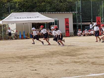 徒競走では、「位置について、よーい」という声に合わせて、走る姿勢になり、合図と同時に、まっすぐゴールを目指して全力で走りました。自分の力を出し切れるように一所懸命走ることができました。