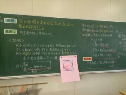 6年生の「円の面積」の授業はおとといに始まったばかりですが、本日早くも佳境を迎えました。