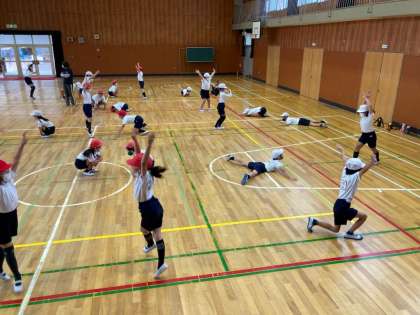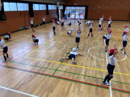 3年生の体育では、「表現運動・リズムダンス」が始まりました。曲に合わせて踊ったり、何かになりきったりして、体を思いっきり動かしています。