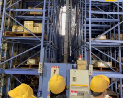 大阪ねじセンターでは、村井製作所の村井さんにねじの歴史をはじめ、製造、流通についてていねいに説明していただきました。50年ほど前につくられたこのねじセンターで働いておられる方は、たったの二人ということに子どもたちはとても驚いていました。全自動の倉庫を使用しているため、パソコン一つの操作で約3800種類のねじの中から欲しいねじを取り出すことができるそうです。全自動の倉庫が動くところを目の前で見せてもらい、子どもたちはとて嬉しそうでした。また流通の話では、外国から輸入しているねじのことや、外国に行って外国の商社の方と取引きをするというお話も聞かせていただきました。最後には子どもたちからの質問にもたくさん答えていただき、とても有意義な時間でした。