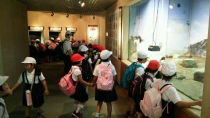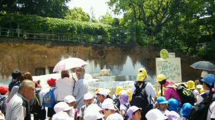 動物園に到着してすぐ、象がおいしそうに朝食の草をモリモリと食べている様子を観察することができました。長い鼻を使ってうまく口へ草を運ぶのを見ると、歓声が挙がっていました。白熊のコーナーにはテレビカメラがたくさん撮影に来ていました。お弁当を食べた後は1年生は2年生とペアになり、ヘビなど爬虫類のコーナーを回りました。2年生のお兄さんお姉さんの優しいエスコートで楽しいひと時を過ごすことができました。子どもたちはたくさん歩いて疲れたかもしれません。早く寝て、体調を整えてくださいね。来週はお気に入りの動物の絵を描く予定です。