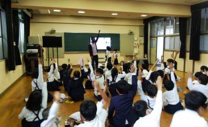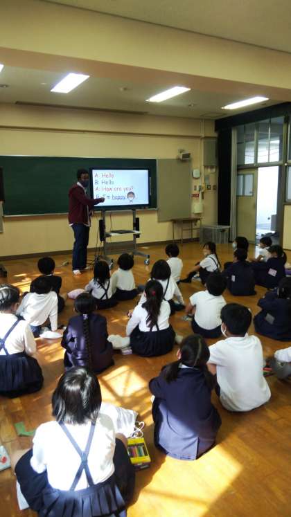 今日は久しぶりに、モリス先生との外国語の授業でした。気持ちを表す言葉を学習しました。2年生は外国語の時間が大好きです。