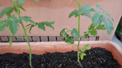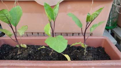 夏野菜は、ミニトマト、オクラ、エダマメ、ナス。葉や茎の違いを見て「どれがどの苗なのか」見分けていました。