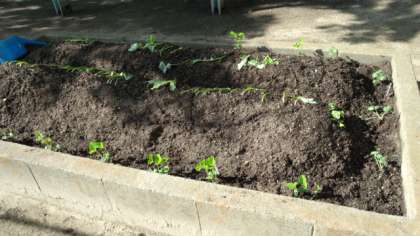 あおぞら学級で、夏野菜とサツマイモの苗を植えました。
