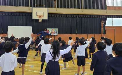 今日は久しぶりにモリス先生と外国語活動をしました。挨拶や気持ちを表す言葉を歌やチャンツに合わせて楽しく学習しました。最後は、モリス先生の出すクイズに積極的に取り組むことができました。