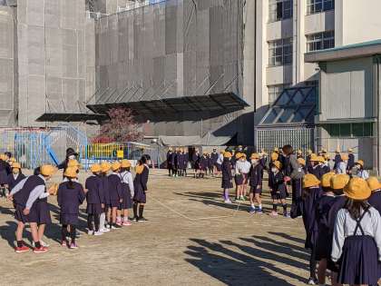今日は、久しぶりに全校児童が一斉に運動場に出て、集会が行われました。今日の集会は、スポーツ委員会による、毎年恒例の長縄集会でした。各クラス、3分間で何回長縄を跳べるかに挑戦する企画です。