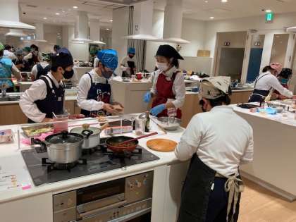 ライス・サイエンス・セミナーという特別講義で、アルミ鍋で炊いたごはんと土鍋で炊いたごはんと、おにぎりを作って味を食べ比べしました。また、野菜も無駄にしない切り方を工夫してみそ汁を作ったり、出汁をとるために使ったかつお節をふりかけに利用したりと、食材を無駄にしない調理の仕方を教えてもらい、実践しました。