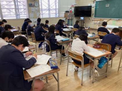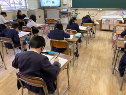 昨日と今日、3年生は初めての経年調査を行いました。40分も集中して取り組むことが初めての人もいたと思います。難しい問題も何度も読み返して、頑張って解きました。