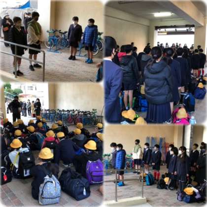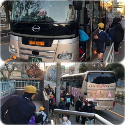 雲一つない空と透き通った空気のなか、朝の寒さにも負けず6年生全員が元気に修学旅行に出発しました!
