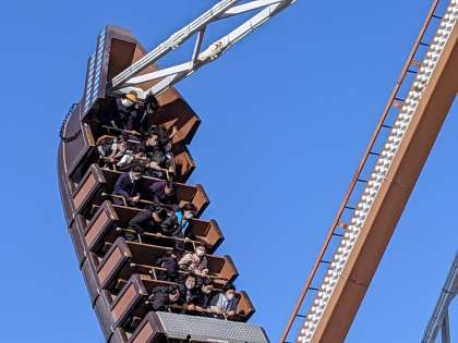 船首や船尾は、ほぼ垂直になり、落下時の浮遊感は最高です♪