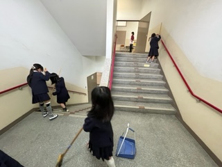 3学期になり、新しい掃除場所が決まりました。子ども達ははりきって掃除しています。掃除時間が終わり、昼休みが始まってもみんなで協力して掃除している子達もいました。