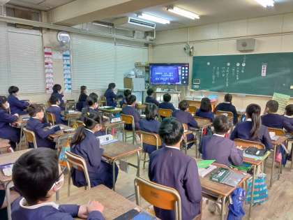 1月17日。27年前、阪神・淡路大震災が起こった日です。児童朝会ではTeamsを使って、校長先生から震災当日の様子や残された家族の思いなど、これからも忘れてはいけないことについて、お話がありました。電気が止まり、電波も途切れ途切れの中、何とか状況を伝えようとしておられるラジオ局の方の音声や、高速道路が倒れ、ぎりぎりのところで停まっているバスの写真など。想像を絶する情景に、子どもたちは真剣な面持ちでお話を聞いていました。
