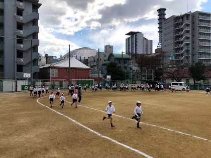 今日から耐寒駆け足が始まりました。火・木曜日は1・3・5年生、水・金曜日は2・4・6年生が走ります。約5分間、運動場のトラックを走ります。