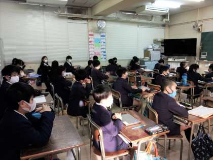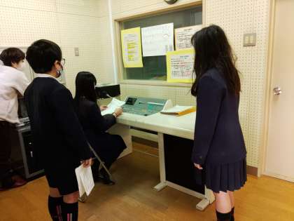 今年初めての集会は、Cチームによる「歌っている人はだ〜れだ?」ゲームでした。今まで、曲名を当てるゲームはありましたが、歌っている人を当てるのは初めて。低学年も知っている歌から順に、だんだん難しい曲になっていきます。正解を発表すると、教室からの歓声が放送室まで聞こえてきました。Cチームの子どもたちも、その声を聞いて手ごたえを感じられたようでした。