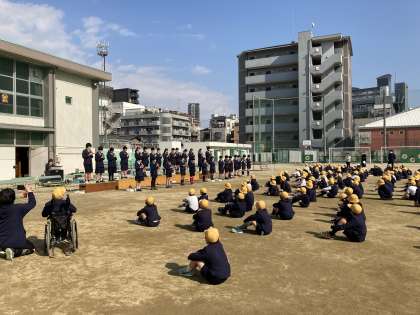 演奏も合唱も、呼びかけもさすが九条南小学校の最高学年!1年生から5年生は「さすが6年生だなぁ、すごいなぁ」と感動した様子で聞き入っていました。