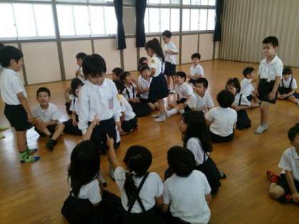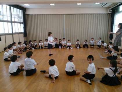松本牧子先生や、北野先生の伴奏に合わせて、Mayo先生と歌ったり、踊ったりしながら学習した初めての外国語活動。とても充実した時間になりました。