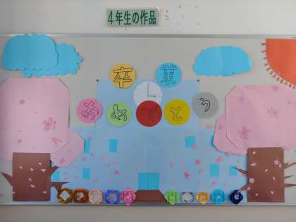 今日は、第120回卒業式でした。卒業証書の授与では、一人一人がしっかりと前を向いて自分の夢を語り、講堂の屋根をたたく雨音が子どもたちへの拍手のようでした。5年生・6年生の「別れのことば」も、心がこもっていてバトンが受け継がれました。各学年の廊下には、卒業をお祝いする掲示が飾られ、6年生の旅立ちを祝っています。