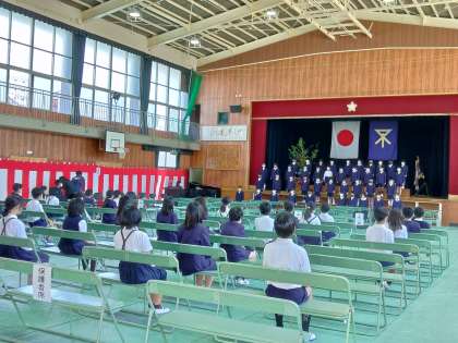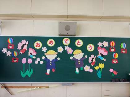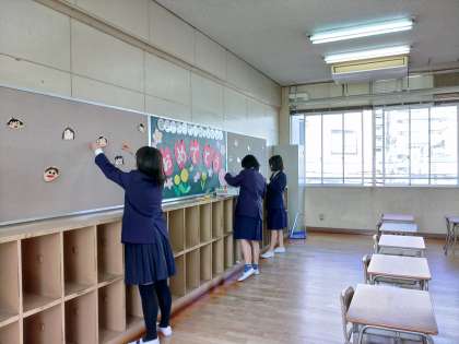 明日の入学式に向けて、新6年生が登校しました。隅々まで掃除をしたり、きれいに飾りつけをしたりと、心を込めて準備をしていました。新2年生も、6年生が見守る中、「お祝いのことば」の最後の練習をがんばっていました。明日、1年生が来るのを楽しみに待っています!。