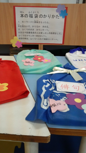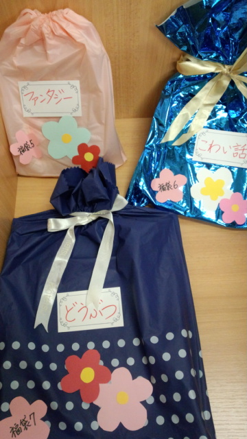 来週月曜日から図書室に「本の福袋」コーナーを作ります。