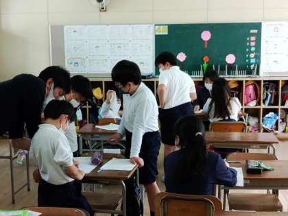 第2回目の委員会活動では、A・B・Cのそれぞれのチームに分かれて、集会でするゲームを考えました。相談している中でも、「1年生には難しいんちゃう?」「3択にしたらできるかな」と、1年生を気遣う言葉がたくさん聞かれました。今年も、すてきな集会になりそうです。