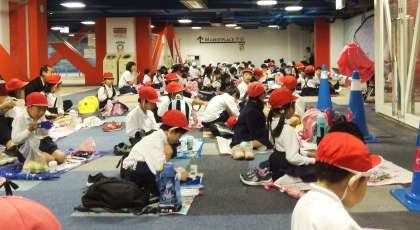 悠々と泳ぐ大きなジンベイザメには、みんな驚きの声をあげていました。館内をどんどん歩くにつれて「お腹すいた〜。」の声が聞こえてきました。お家の人に作っていただいたお弁当をおいしくいただき、おやつタイムもにこにこの笑顔が見られました。