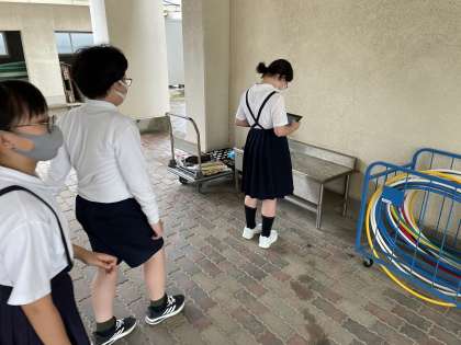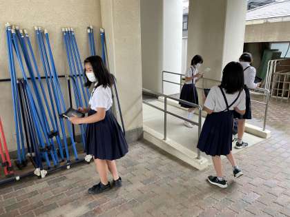 6年生は家庭科の学習で「クリーン大作戦」をしています。