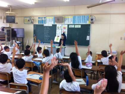 3年生の栄養指導は、緑色の食べ物「野菜を食べよう」がめあてです。