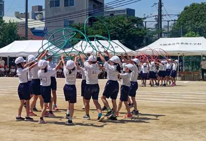 5月29日(日)、澄み渡る青空のもと、創立120周年記念運動会を開催しました。5月とは思えないほどの暑さの中でしたが、どの子も自分の力を精一杯出し切って、最後まで頑張ることができました。