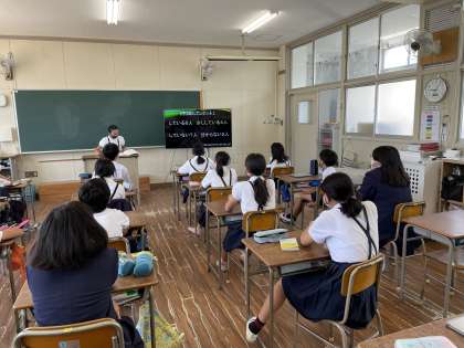 国語の「防災ポスターを作ろう」の単元の学習をしています。防災についてのポスターではなく、防災についてのパワーポイントを作って発表しました。みんなにわかりやすく伝えるにはどんなパワーポイントにすればよいか、どのように話せばよいかを考えて、一人ずつ発表しました。