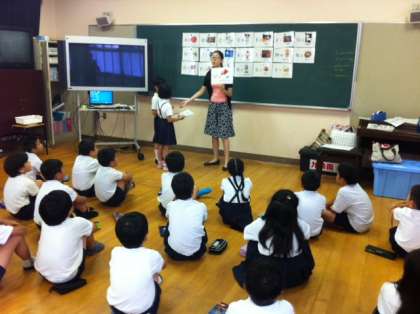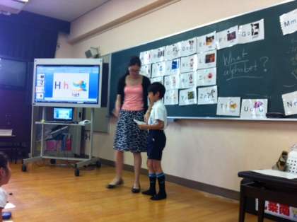今日の外国語活動は、あいさつの仕方とアルファベットの発音でした。
