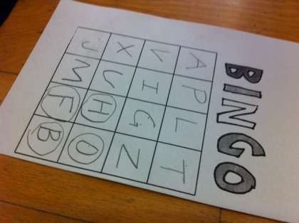 「元気です。」「おなかがすいています。」「のどが渇いています。」などを英語で伝える練習をしました。Mayo先生とのやりとりでじょじょに発音が上手になっていきました。アルファベットの発音練習をした後、アルファベットビンゴをしました。「B」と「V」の発音のちがいが難しく「今のはB?V?どっちだった?」と悩んでいましたが。「はちがブーンと飛んでいるときの音のようなのがV」とMayo先生に教えていただいて聞き分けこととができるようになりました。