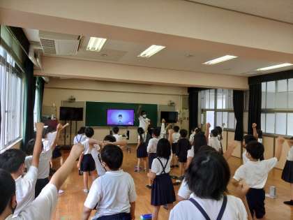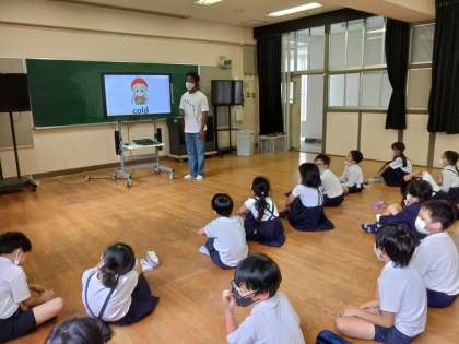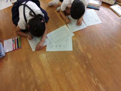 今日の6時間目は、久しぶりにモリス先生の外国語活動でした。初めに、あいさつの歌を歌いました。動画の振付に合わせて体を動かしている様子が、とても楽しそうで、みんなノリノリです。次に、前回、学習した天気や色、服装の言い方を復習しました。最後は、ワークシートで、学習のまとめをしました。3枚もありましたが、最後まで集中して取り組めました。