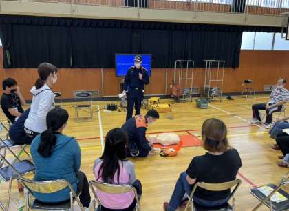 本日の放課後、西消防署の方々に来校していただき、救命救急講習を行いました。