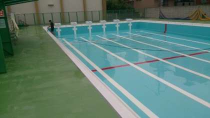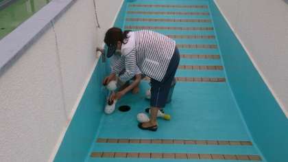 プールサイドの塗り替え工事も完了し、なめらかで、熱が伝わりにくいプールサイドになっています。