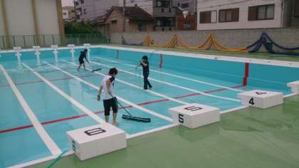 6月16日 教職員でプール清掃を行いました