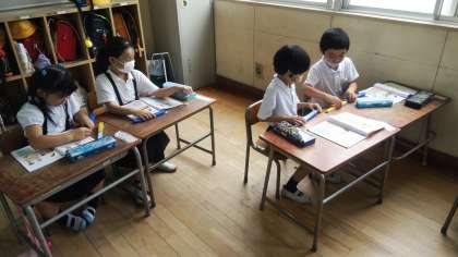席が近くの友だちと問題を出し合いました。一人一人がブロックを操作しながら考えました。とても盛り上がっていました。