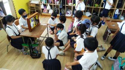 外が暑過ぎる日や雨の日の休み時間、子どもたちは工夫して遊んでいます。