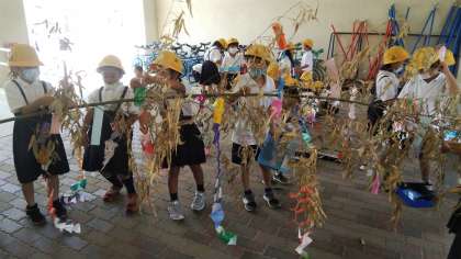 はさみやのりを使った飾り作りも楽しみながらできました。