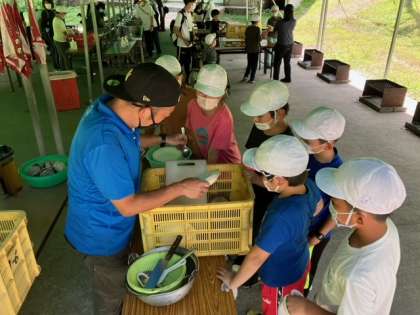 恒例の後片付けチェックで厳しい判定をクリア、さすがに九条南小学校の5年生は、素晴らしです。