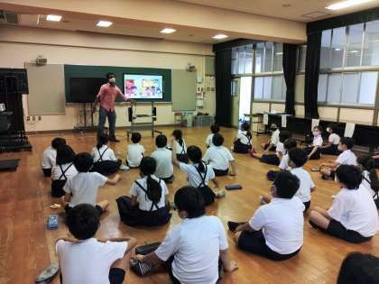 今日は、2学期初めてのモリス先生との外国語活動でした。アルファベットの歌を楽しく歌った後は、時刻の表し方を学習しました。午前や午後など、難しい表現もありましたが、モリス先生の発音を聞きながら、意欲的に取り組んでいました。