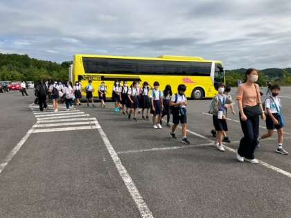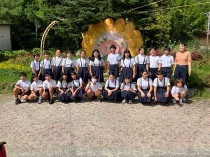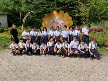 予定通りにモクモクファームに到着しました。朝の様子がウソのように晴天です。クラス写真をグループで撮ってから活動開始です。