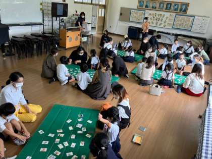 1年生はお家の方々とカルタ大会をしました。1学期に50音を覚え、学習したことを「いろはかるた」で腕試し。対戦前は、「お家の人は強いから負けるかも。」と弱気になっていた子どもたちですが始まるとどんどん絵札を取り、楽しく過ごすことができました。
