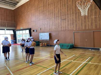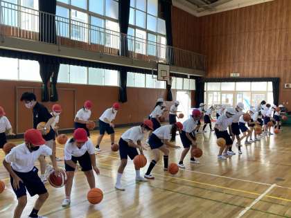 5年生は、体育科でバスケットボールの学習をしていますが、今日は「大阪信用金庫プレゼンツ さくら・夢授業バスケットボール教室」の特別授業をしていただきました。Bリーグに所属するプロバスケットボールチーム「大阪エヴェッサ」のスクールコーチをゲストティーチャーに迎えての授業で、ドリブルやシュートなどバスケットボールの技術の練習はもちろん、「できなくてもいいからやってみよう」「挑戦することが大切」と何度も仰っていて、苦手なことや難しいことにもトライすることが大切であるということを教えていただきました。