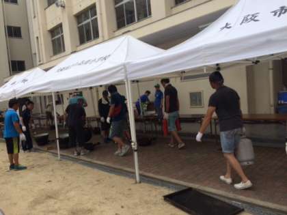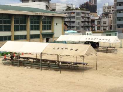 阿部校庭キャンプ実行委員長、子ども会の役員さん、PTA運営委員,保護者の皆さんが協力して、校庭キャンプの準備が着々と進んでいます。