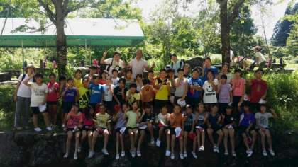 晴天の中、「魚つかみにGO!!」きっと水の冷たさが心地よいことでしょう。